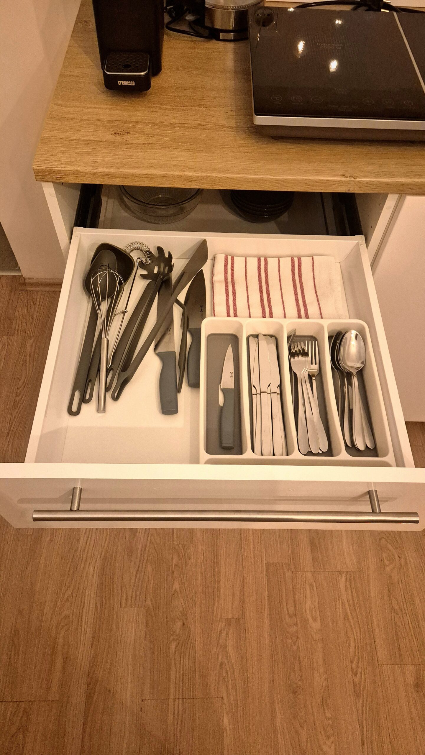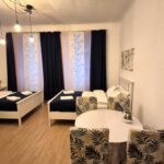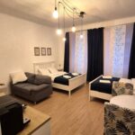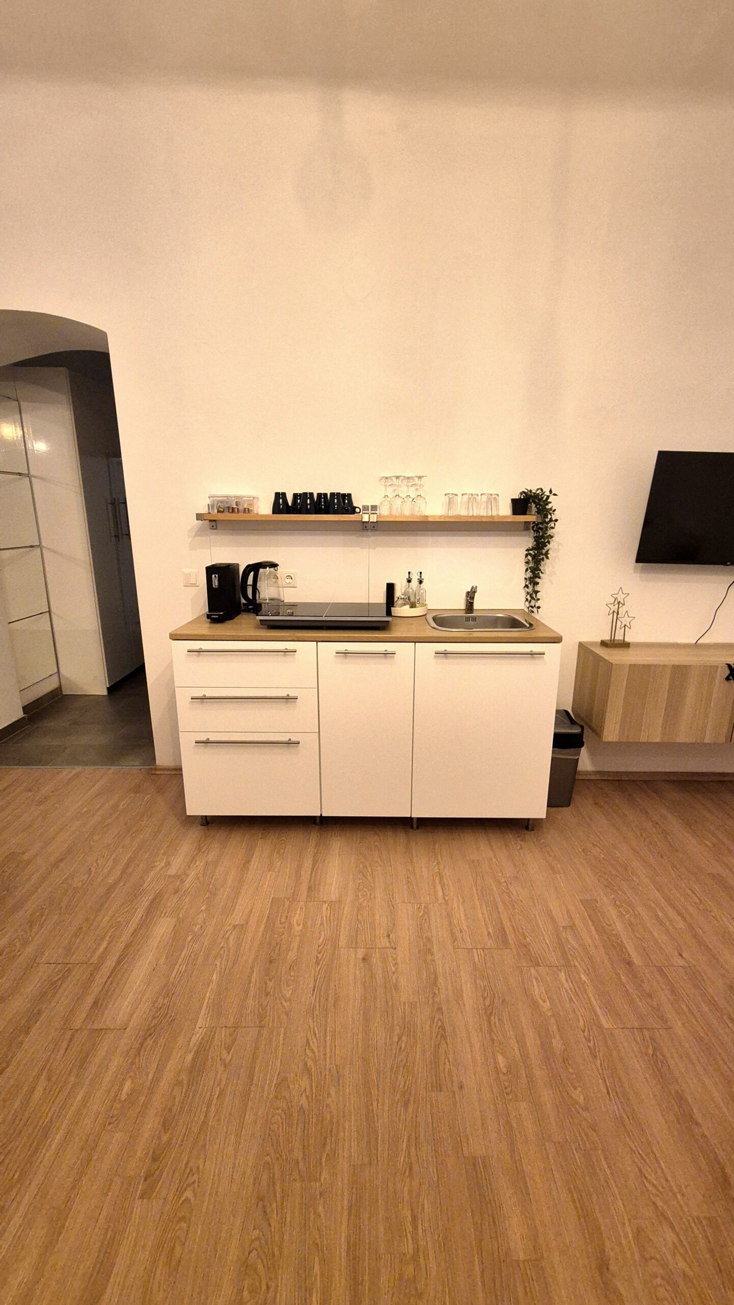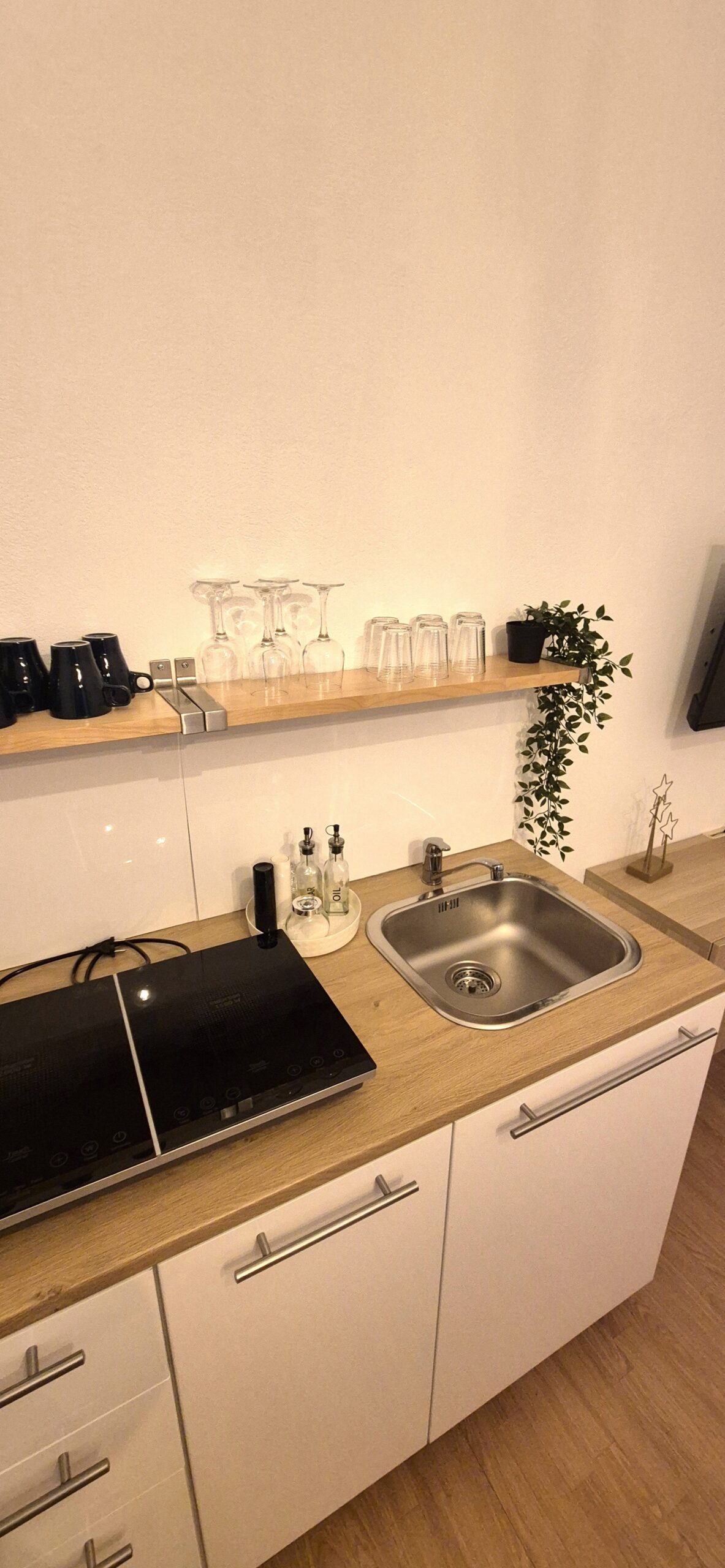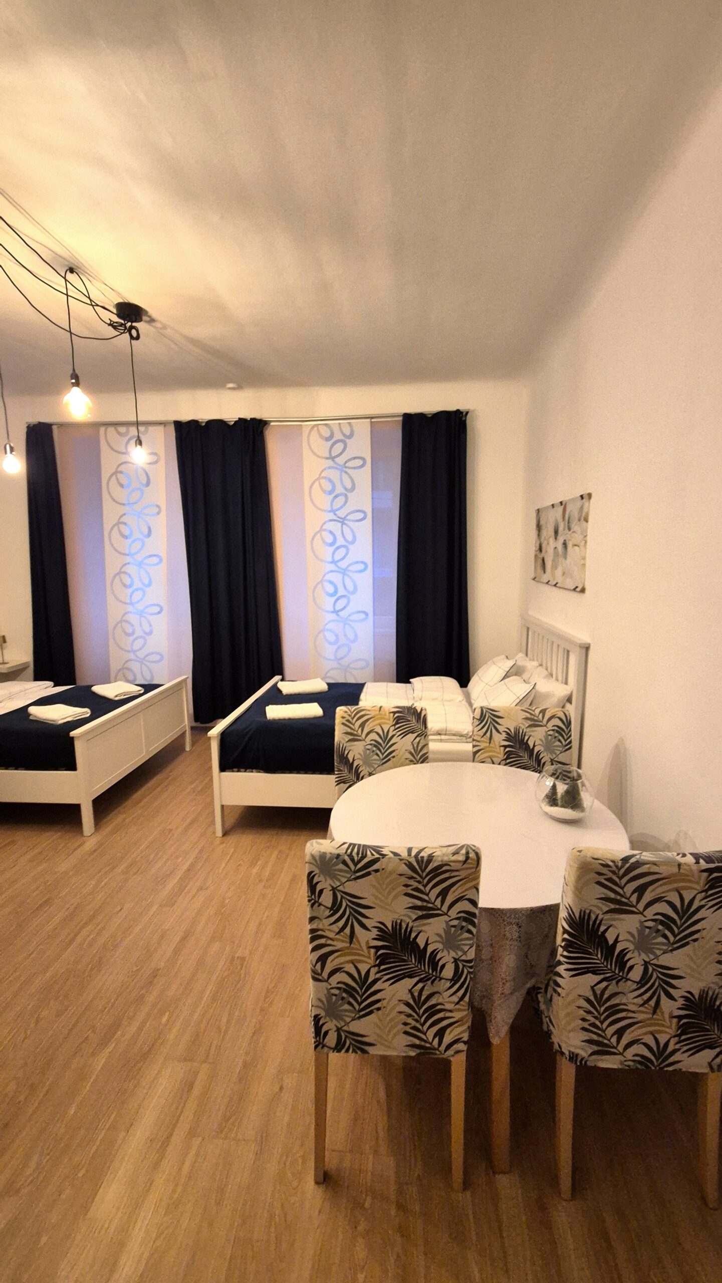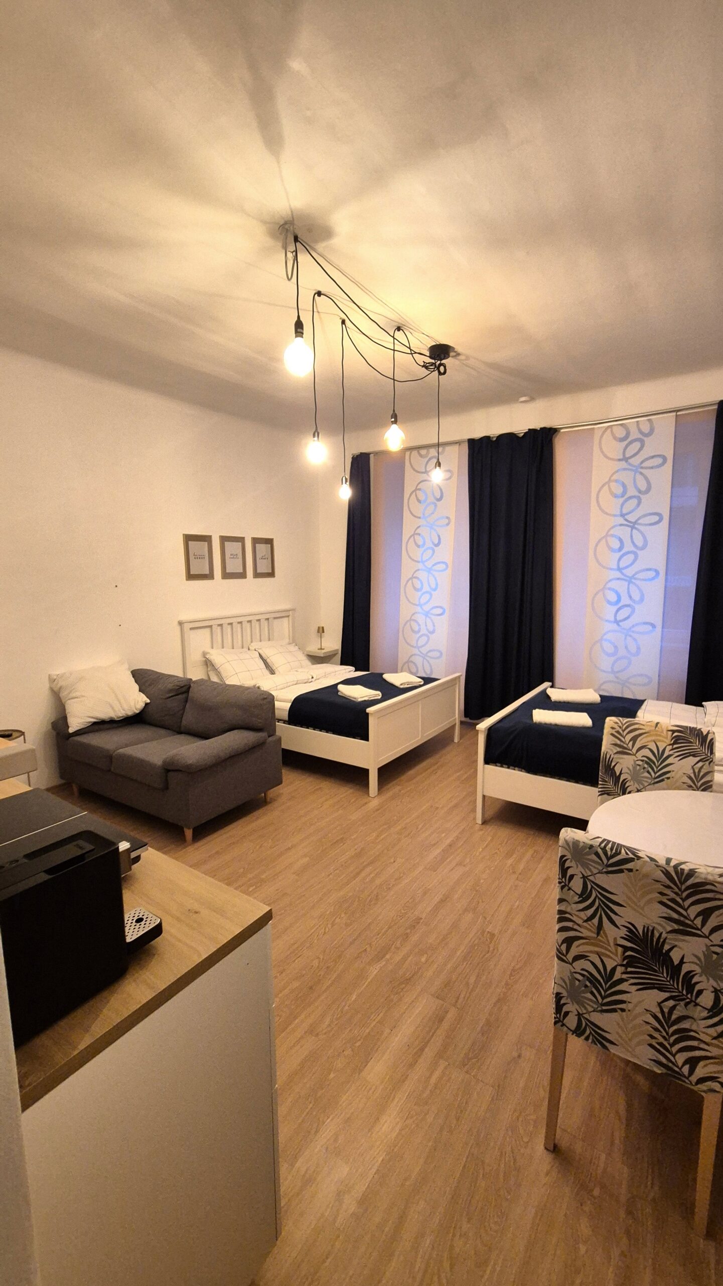 The apartment has one bedroom and offers a modern and cozy space where you can relax after a day in the city. It is designed to feel welcoming and easy to use. The kitchenette is fully equipped with a refrigerator, microwave, and kettle. This allows you to prepare breakfast, snacks, or simple meals whenever you like.