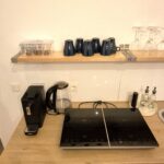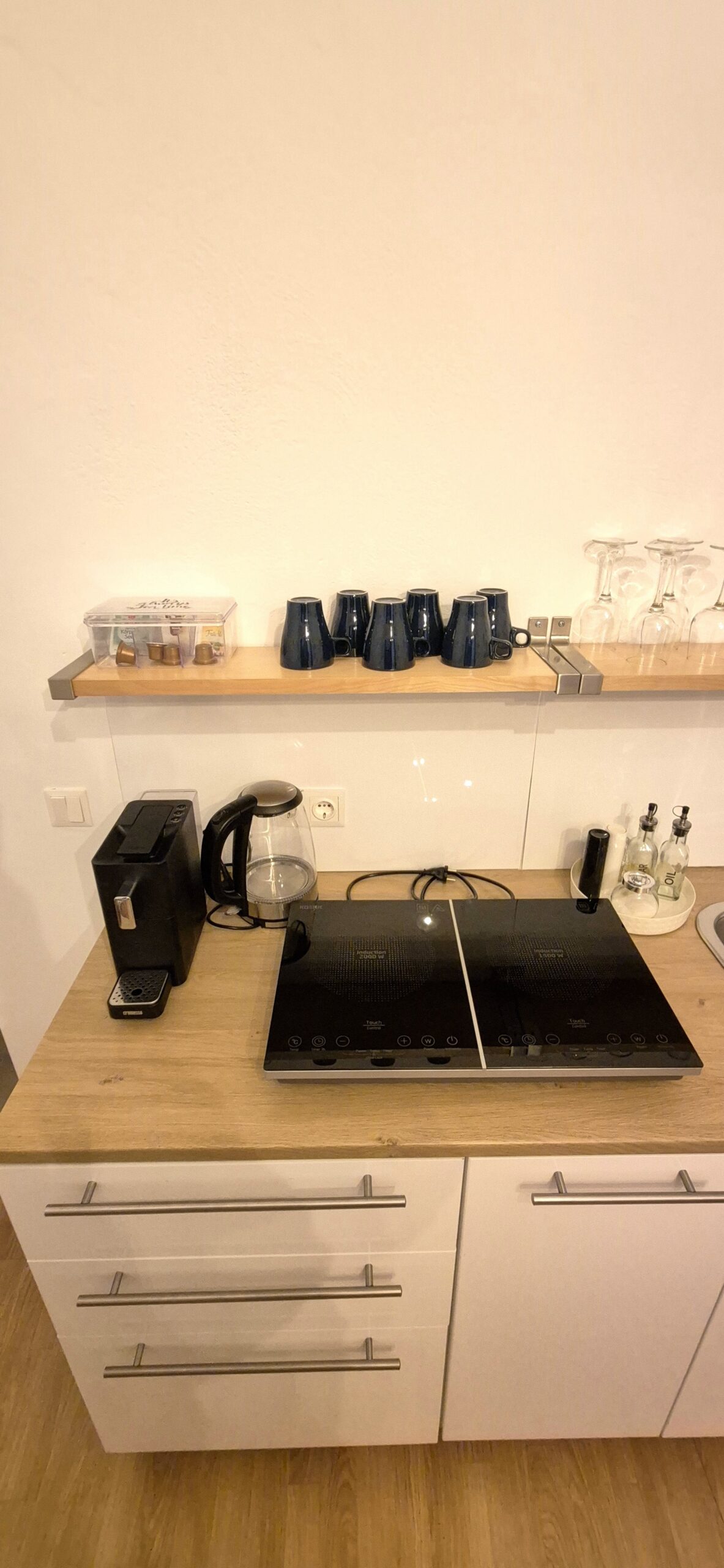 Kitchen: Kitchenette, kitchen utensils, kettle, coffee machine, microwave, refrigerator, coffee and tea essentials