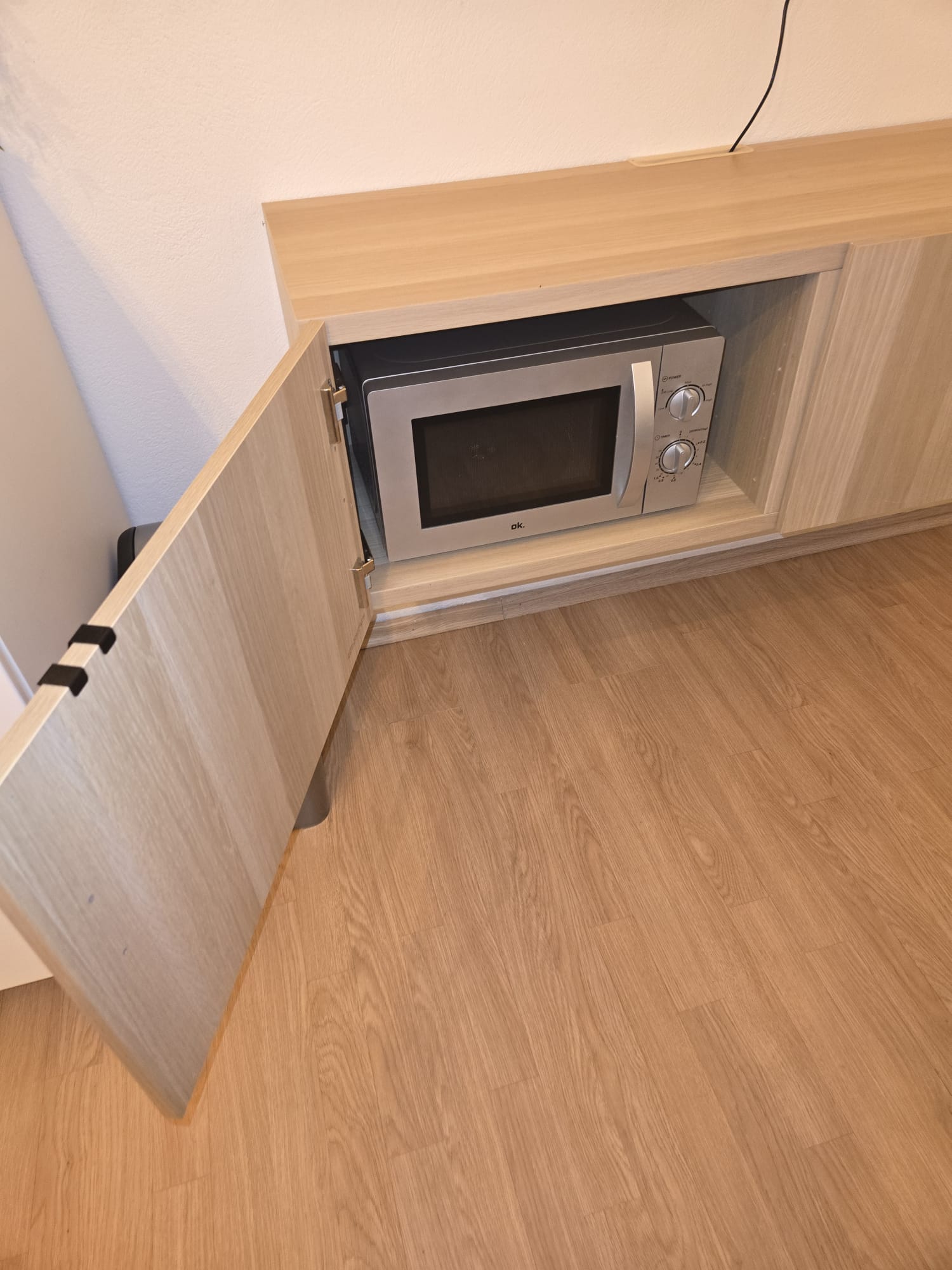 The apartment has one bedroom and is modern, clean, and cozy. It is designed to make you feel at home. The kitchenette is fully equipped with a refrigerator, microwave, and kettle, so you can prepare simple meals, breakfast, or snacks whenever you like.